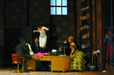 当然,歌剧演员能“说”的同时,更要会唱。风情万种的女仆阿黛丽唱起经典的《笑之歌》,把一心跻身上流社会的轻佻与造作演绎得活灵活现;么红在假装匈牙利贵妇时的高难度唱段《我故乡的歌曲》得到全场的热烈掌声,极具喜剧天赋的她,把许多小动作、小腔调处理得恰到好处,她塑造的贵妇形象令人捧腹;而饰演贵族王子的梁宁一曲《香槟之歌》点燃了即将到来的舞会高潮。