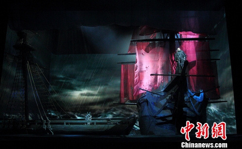 该剧导演强卡洛·德·莫纳科,以薄纱、丝绸与12块大幅投影幕布结合高科技手段,将阴森恐怖的幽灵船将直接搬上舞台,逼真表现出大海上波涛汹涌、狂风肆虐的场面,2013年二度上演邀观众一同魔法再现“咆哮的暴风雨和大海的波涛汹涌”极致经验。