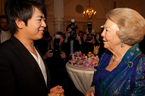 郎朗与荷兰女王贝娅特丽克丝在后台亲切交谈