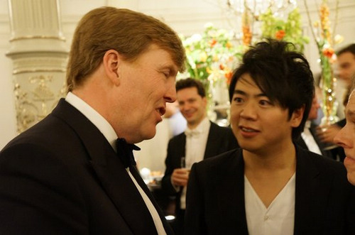 音乐会结束后,荷兰女王与威廉王子亲自来到后台,与郎朗亲切见面交谈。女王被郎朗唯美而富有激情的演奏所感染,她握着郎朗的手说:“你拥有天才的、神奇的双手!我曾经在电视上看到过你很多次的演出,这次终于看到现场表演,简直太神奇了!”女王还感谢郎朗曾经带领两位荷兰的小钢琴家同台演出,帮助世界上年轻一代的钢琴家通向他们的音乐之梦。同时,女王还特别感谢了郎朗的母亲培养出这么优秀的世界级钢琴家。而威廉-亚历山大王储对杨松斯说:“感谢你能够邀请到世界顶尖级的钢琴家郎朗来参加此次的庆典音乐会!”最后王储还向郎朗用中文说了声“谢谢”,以表达他的感激之情。当天,中国新华社、中央电视台、凤凰卫视也特派记者前往现场进行报道。