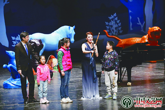 北京国际音乐节儿童音乐会上,竹笛演奏家唐俊乔与现场小观众互动