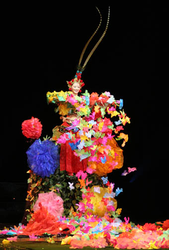 7月21日,中国金奖魔术节目展演暨2009年北京世界魔术大会开幕式晚会预演在京举行。图为沈娟表演《万紫千红》。中国文联网 余宁摄影报道