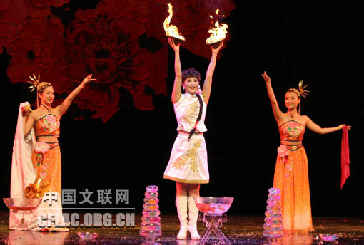 7月21日,中国金奖魔术节目展演暨2009年北京世界魔术大会开幕式晚会预演在京举行。图为徐凤美表演《金玉满堂》。中国文联网 余宁摄影报道