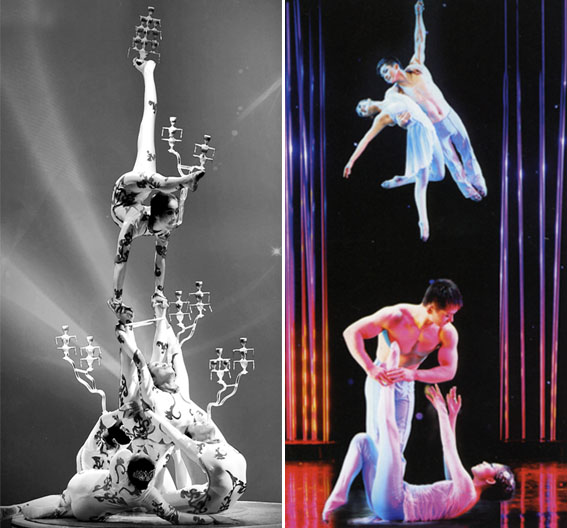 尽管“织体化”的舞蹈设计已经使杂技艺术的舞台呈现颇具“艺术性”了,但我们还可以向更深层次迈进,这就是我们最终要提及的“意象化”与“情节化”的舞蹈设计。