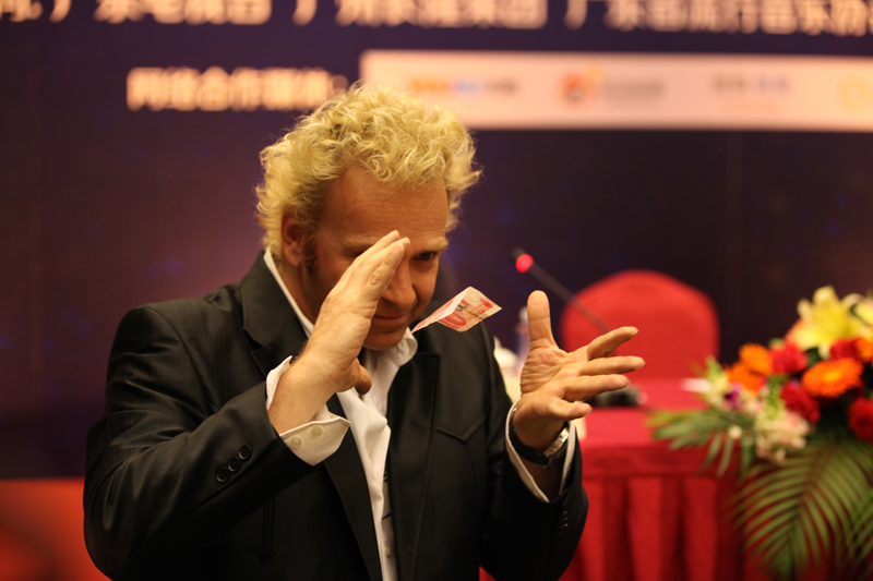 美国幻象魔术大师法兰茨•哈拉利现场表演人民币悬浮术