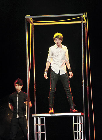 暗如夜空的舞台上,在一束白色追光灯的照射下,一对青年男女伴随着热烈的音乐动感而舞,随即女郎进入一个前面镂空的大箱子,男子帅气地施展着“魔法”,将木板一片片地插入箱子中,女郎则一点点消失,最后完全不见,然而随着“魔法”的继续,几秒钟后女郎又神奇地被变回箱子里……在近日举行的第二届中国西湖国际魔术交流大会嘉宾展演中,一出超炫的魔术演出《极速快递》以其强劲的“魔力”hold住了全场,让观众看花了眼,而这一魔术的表演者更是迅速虏获了现场“魔迷”的心。他就是来自台湾的魔术新秀文沛然。