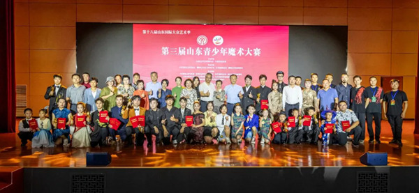 作为第十八届山东国际大众艺术季的重要活动之一,本次活动以“魔术点亮青春 创新创造未来”为主题,吸引了山东省各地众多优秀杂技魔术团队和个人参赛,涌现出许多传统技艺与现代元素相结合的优秀作品,展现了青少年的探索精神和创新思维。10日晚,中国杂技家协会分党组成员、副秘书长刘挥,中国杂技家协会副主席邓宝金,中国杂协理事、魔术艺术委员会副主任傅琰东,山东省文联党组成员、副主席于惠东,共青团山东省委副书记彭莉,聊城市委常委、宣传部部长柳庆发等出席并为获奖节目颁奖,山东省文联副主席、山东省杂协主席孙文艳宣读获奖名单。本次活动中,21个入围作品涵盖了魔术舞台、近景、心灵等多个类型,划分了少儿组、少年组、青年组三个组别先后进行展演。