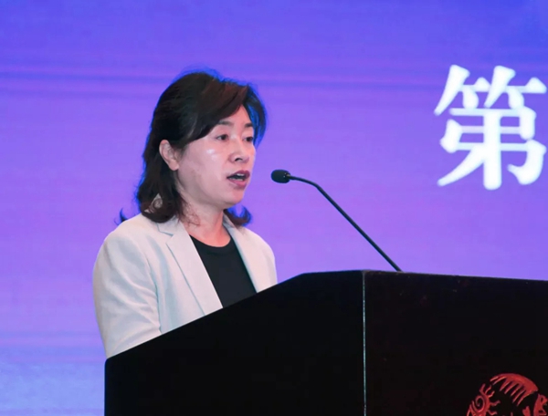 图为北京杂协副主席,中国杂技团有限公司党委书记、董事长,北京市杂技学校理事长齐红作交流发言