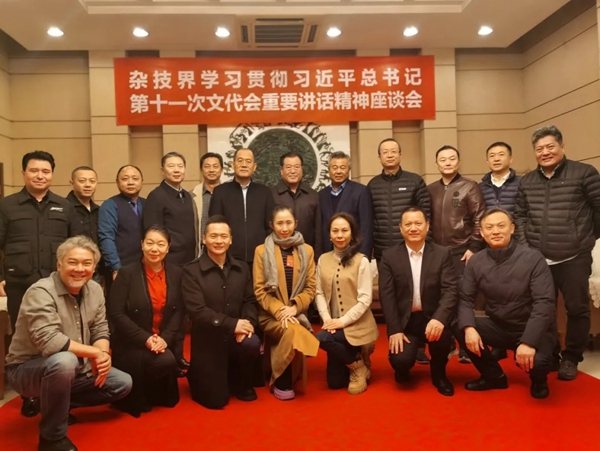 12月17日,大会一结束,中国杂技家协会即在京组织召开“杂技界学习贯彻习近平总书记第十一次文代会重要讲话精神座谈会”。全国政协常委、中国文联副主席、中国杂协主席边发吉,中国杂协分党组书记、驻会副主席唐延海,中国杂协分党组副书记、秘书长、一级巡视员肖世革,中国杂协副主席付继恩、安宁、李宁、吴正丹、阿迪力●吾休尔、梅月洲、童荣华和刘军、池文杰、张权、李洁、陈涛、燕列松等来自杂技界的文代会代表,以及中国杂协顾问王仁刚、中国杂协分党组成员、副秘书长刘挥,中国文联杂技艺术中心副主任于秀英等参加座谈。