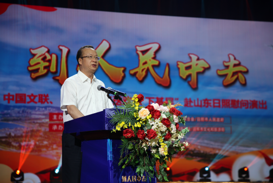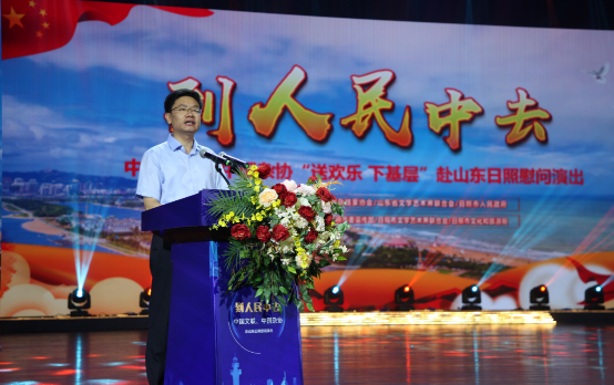 李在武代表日照市委、市政府及日照人民致辞。他说,长期以来中国文联坚持“二为”方向、“双百”方针,打造的“送欢乐 下基层”文化品牌,唱响大江南北,赢得了广大群众的热情掌声和广泛赞誉。我们将以此次活动为契机,引导日照市广大文艺工作者扎根人民群众,以实际行动引领文明新风尚,传播时代正能量,不断谱写文化繁荣发展的新篇章。