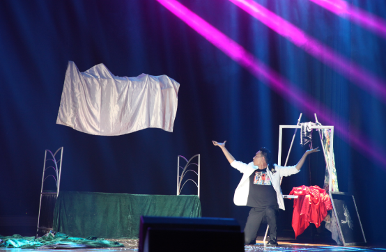 图为著名魔术师丁德龙表演的魔术《德龙秀》