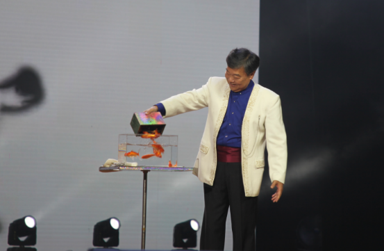 图为中国杂协魔术艺术委员会副主任、著名魔术师王立民表演的魔术《年年有鱼》