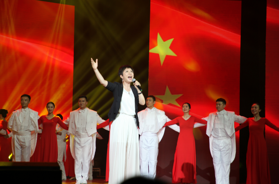 图为原空军政治部文工团著名歌唱家、国家一级演员林萍演唱《红旗飘飘》
