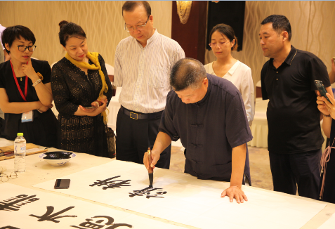 7月26日下午,由中国书协理事、中国文艺志愿者协会理事张铜彦,中国书协理事、楷书专业委员会副主任、中国文艺志愿者协会理事吴震启,中国书协会员、中央国家机关书法协会副秘书长陈水冬等书法家组成书法交流小组,与当地书法爱好者进行了书法交流辅导。