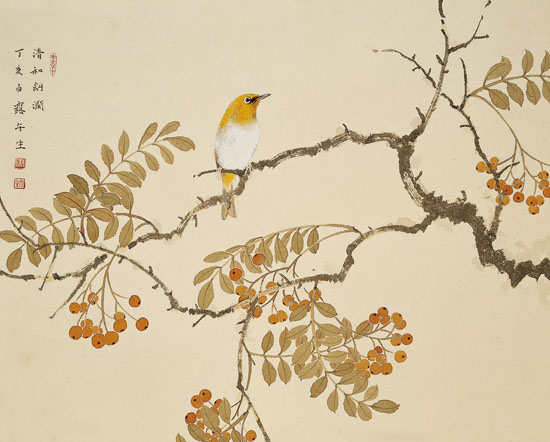 从周午生的画面中,我们终于可以获得那久违的似乎已经有些陌生的清赏雅兴。周午生对于传统工笔花鸟画有着浓厚的兴趣,并孜孜不倦地从中汲取精华。如今,在其作品中已经看不到太多摹古之风的痕迹,这得益于他的学习心得:摹古而不泥古。