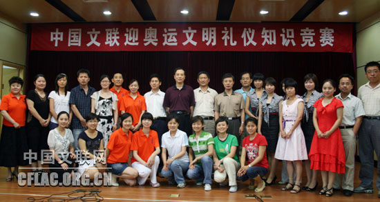 7月30日,中国文联“迎奥运讲文明树新风”礼仪知识竞赛举行决赛,中国文联党组成员、书记处书记廖奔和中国文联机关党委专职副书记徐宝玉等出席了活动。