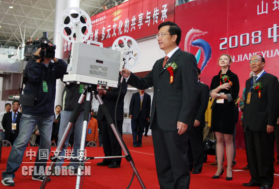 青海省委书记、省人大常委会主任强卫启动电影机按钮。中国文联网 余宁 摄