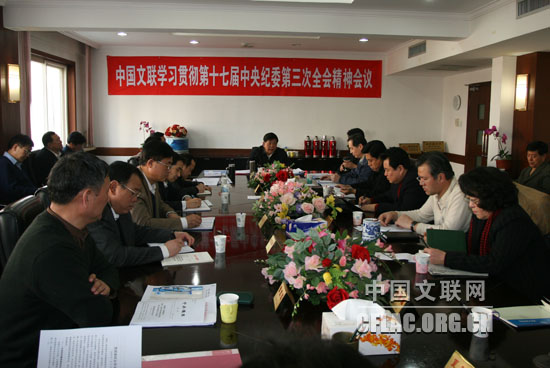 2月9日,中国文联召开党组扩大会学习贯彻中纪委十七届三次全会精神。图为会议现场。中国文联网 余宁 摄