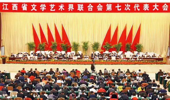 江西省文学艺术界联合会第七次代表大会是在深入贯彻落实科学发展观、兴起社会主义文化建设新高潮的形势下,在加快实现江西崛起新跨越的进程中召开的一次重要会议,是继2000年12月召开第六次文代会之后的一次承前启后、继往开来的盛会。