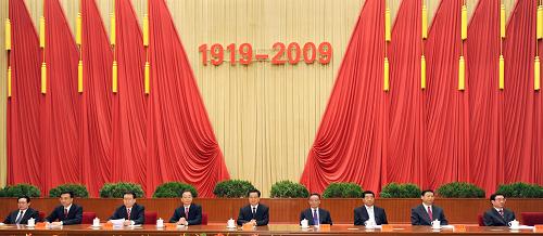 5月4日,纪念五四运动90周年大会在北京人民大会堂举行。胡锦涛、吴邦国、温家宝、贾庆林、李长春、习近平、李克强、贺国强、周永康等党和国家领导人出席大会。新华社记者