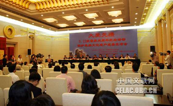 5月12日,“大爱无疆——5·12抗震救灾周年纪念活动 保护羌族文化遗产成果发布会”在京举行。图为发布会现场。中国文联网 余宁 摄