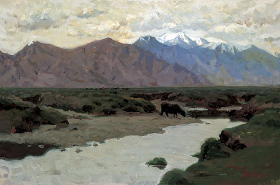 《帕米尔的牧场》 纸板油画 靳尚谊