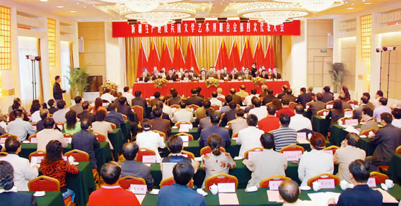 我们这次大会,是在兵团上下深入贯彻党的十七大、十七届三中全会精神,全面贯彻落实科学发展观,按照兵团第六次党代会的部署,全力促进兵团经济社会又快又好发展,忠实履行屯垦戍边使命,充分发挥“三大作用”,为率先在西北地区全面建成小康社会而不懈努力的新形势下召开的。来自各师、大学文联、兵团公安文联和各文艺家协会的150多名文艺工作者代表肩负使命,欢聚一堂,共商兵团文学艺术的发展大计。这是新世纪以来兵团文艺界的一次盛会,对于团结、动员兵团广大文艺工作者贯彻党的十七大精神,开创兵团文艺工作新局面,推动兵团经济社会又快又好发展具有十分重要的意义。