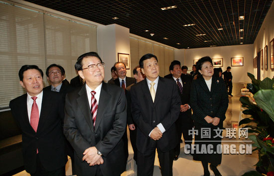 李长春一行在中国文艺家之家艺术展厅参观。中国文联网 孟祥宁 摄