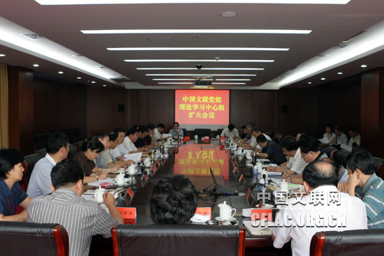 8月12日,中国文联在中国文艺家之家召开党组理论学习中心组扩大会议,深入学习贯彻胡锦涛总书记在中央政治局第二十二次集体学习时的重要讲话精神。中国文联党组书记、副主席胡振民,党组副书记、副主席覃志刚、李牧,党组成员、副主席廖奔,中国文联副主席丁荫楠、白淑湘、刘兰芳,中国文联党组成员、书记处书记夏潮和中国文联各文艺家协会、机关各部室、各直属单位负责人出席会议。胡振民主持会议。