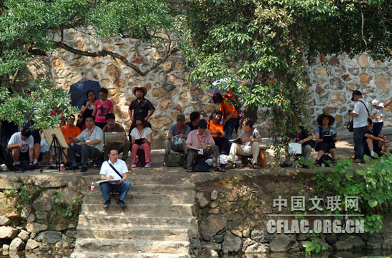 8月21日,在湖南长沙橘子洲巨大的青年毛主席雕塑前,中国文联、中国美协2010年赴湖南革命纪念地深入生活、创作采风活动启动。图为美术家在韶山毛泽东故居写生。中国文联网 段泽林 摄
