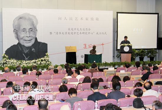 8月29日是美术家吴冠中91岁诞辰纪念,在这一天,由中国文联、清华大学共同主办的“向人民艺术家致敬——吴冠中先生追思会暨清华大学吴冠中艺术研究中心成立仪式”在清华大学举行。图为仪式现场。中国文联网 崔凯 摄
