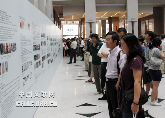 8月29日是美术家吴冠中91岁诞辰纪念,在这一天,由中国文联、清华大学共同主办的“向人民艺术家致敬——吴冠中先生追思会暨清华大学吴冠中艺术研究中心成立仪式”在清华大学举行。图为来宾在追思会前观看介绍吴冠中生平的展板。中国文联网 崔凯 摄