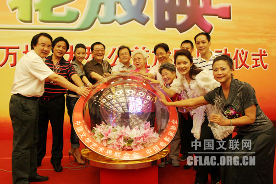 8月31日,由中国文联、中国影协主办的“百花放映”暨“百县千村万场”大型公益放映活动启动仪式在全国政协礼堂举行。图为到场嘉宾共同启动“百县千村万场”公益放映活动。中国文联网 张悦 摄