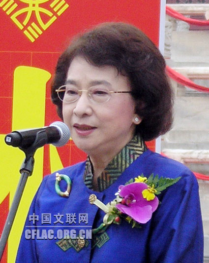 由中华文化联谊会、中国艺术研究院、河南省安阳市政府及台湾“文化总会”联合主办,中国艺术研究推广中心、台湾中华新文化发展协会共同承办,首届“两岸汉字艺术节”9月16日在北京太庙拉开大幕。图为台湾“文化总会”副会长林澄枝致辞。中国文联网 冉茂金 摄