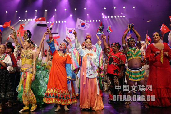 开幕式后,站在飘扬的五星红旗下,中外艺术家们手牵手、挥动着各国旗帜,又一次相聚在中国的舞台上,一场洋溢着浓郁民族民间歌舞风情的当代文化艺术盛宴就此展开。开幕式演出在中国苏州艺术团以中国民族乐曲《茉莉花》为主题的大型舞蹈《华彩神韵》中拉开帷幕。接下来,“苏州园林,漂亮!”“苏州小伙,真棒!”“苏州,我喜欢!”……外国艺术家们用一句句刚刚学会却还带有些许洋口音的苏州话引出了一个个充满异域色彩的节目。白俄罗斯国家舞蹈团的《丰收季节》、古巴拉卡坦舞蹈团的《曼波舞》、捷克维萨坎民间舞团的《快乐的牧羊人》、韩国田银子舞蹈团的《花冠舞》、巴西北大河州联邦大学民间舞团的《彩带飘飘》、美国动力街舞团的《随心所动》、库克群岛启明星舞蹈团的《草裙舞》、埃及拜尼斯维夫民间舞团的《甜蜜的椰枣》、土耳其促进基金会舞蹈团的《黑海情》、苏格兰戈登舞蹈学校艺术团的《勇敢的苏格兰》、阿根廷卡图卢斯探戈舞团的《永远的探戈》、西班牙乔尼弗拉明戈舞团的《过客》、南非文化艺术团的《胶靴舞》,无不用令人振奋、富于节奏感的舞蹈抒发着喜悦。最后,和着观众们的热烈掌声和会心笑声,整台演出在《阿细跳月》的群舞中落下帷幕。