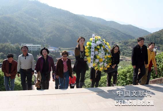 10月28日到11月2日,中国曲协组织曲艺家赴革命圣地遵义采风。图为采风团向红军纪念碑敬献花圈。中国文联网 邱振刚 摄