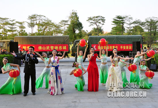 备受瞩目的第十六届广州亚运会11月12日在广州隆重开幕,负责本届亚运会安保工作的武警官兵为运动会的平安举办付出了辛勤的努力和汗水。日前,佛山市文联组织40多名文艺家,走进世纪莲体育中心,为担负本届亚运会佛山赛区安保任务的武警官兵举行了慰问演出,向他们表示问候和敬意。佛山市委常委、佛山军分区政委刘谦强,武警佛山市支队政委曹竹清,市委宣传部副部长、市文联主席商学兵出席了活动。