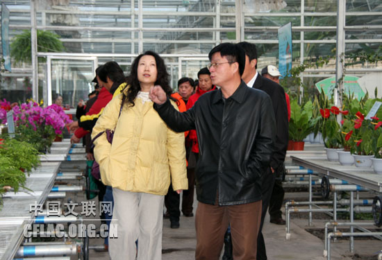 近日,黑龙江省委宣传部、省文联组织文艺家赴素有“林海雪原”之称的海林市海林农场和宁安农场等农垦系统进行采风慰问活动。图为采风团参观农业示范园区。