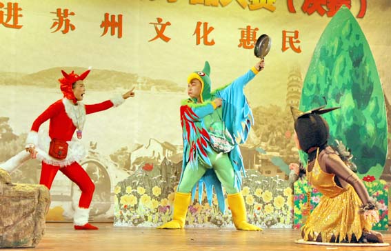 由江苏省文化厅、省文联共同主办的第六届江苏省小戏小品大赛日前在昆山闭幕。小淮剧《公鸡做媒》等12个小戏和《世上本无事》等18个小品分别获得小戏、小品的一、二、三等奖;程红等72人分别获得优秀表演奖、表演奖;蒋宏贵等49人次获得编剧、导演、音乐、舞美的单项奖;苏州市文联等12个单位分别获得优秀组织奖、组织奖。本次小戏小品大赛共收到全省各地申报的作品366件,是历届比赛中最多的一届。经过历时6个月的初赛、复赛,有30个剧目脱颖而出,进入决赛。图为常熟市锡剧团表演的《小刺猬卖刺》。苏利 摄