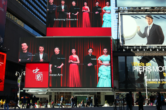 1月17日,由中国国务院新闻办筹拍的《中国国家形象片——人物篇》在纽约时报广场大型电子显示屏上播出,中国各领域杰出代表和普通百姓在片中逐一亮相,让美国观众了解一个更直观更立体的中国国家新形象。该片每小时播放15次,从每天上午6时至次日凌晨2时播放20小时共300次,并将一直播放至2月14日,共计播放8400次。图为正在播出的《中国国家形象片——人物篇》。 新华社发 吴凯翔/摄