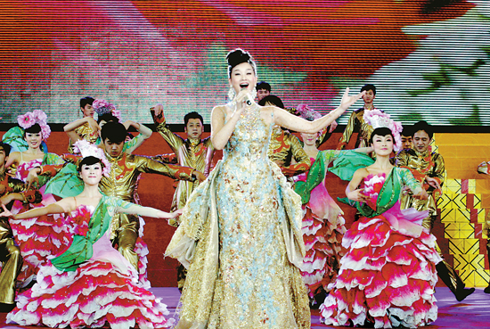 由中国文联主办的“百花迎春——中国文学艺术界2011春节大联欢”近日由中央电视台录制完成,将于2月4日(正月初二)14:30在央视三套首播,并于2月5日(正月初三)00:40、2月7日(正月初五)19:30分别在央视一套和三套重播。图为宋祖英在“百花迎春——中国文学艺术界2011春节大联欢”上演唱。本报记者 孟祥宁/摄