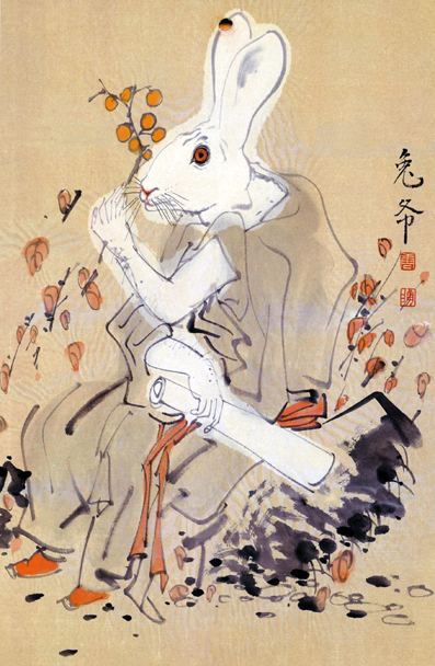 兔在十二生肖中排行老四,是生肖里最温顺可人的动物。然而,不知是什么原因,可爱的兔子并没有在中国几千年的图像史中占有什么显著的位置,特别是在绘画方面,除了崔白笔下那只充满野趣的兔子外,几乎很难找到单独描绘兔子的作品。倒是在工艺美术和民间文艺方面,一些玉兔、铜兔以及剪纸、漆雕、年画中会出现大量有趣的“兔儿爷”,这说明广大百姓还是相当喜欢这种小动物的。在辛卯兔年即将来临之际,美术家在不用思考什么笔墨形式问题、也没有什么传统包袱的情况下,倒是把兔画得别有一番趣味。此外,在与传统民间文艺各种“兔儿爷”的形象比对中,图像时代的兔年如何“拉风”走来是本版着力呈现的。不过,这里没有拉风兔、流氓兔等漫画卡通形象,有的是凝聚中华传统文化精神的略显“朴素”但不“呆板”的兔宝贝。(“拉风”,网络流行语,亦借拉风兔卡通形象之寓意,特指时尚、前卫、酷味足)——编 者