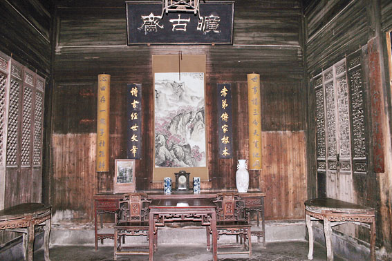 国有明堂,家有堂屋。我国旧式民居之堂屋,位在房屋中间,敞放明亮,故为家庭起居、餐饮、会客之所。堂屋正中最里又常设神龛及祖先神位,壁挂中堂字画,中堂两侧又置对联,所以堂屋亦是举行家庭祭祀及重大礼仪之地。无需庙宇,无需教堂,而纳高远于卑近,天地君亲师在焉。天地为造物,君为政治,亲为父母祖先,师为教育文化。出生,在这里接受亲友之恭贺;成长,在这里接受长者之教诲;年节,在这里祭祀祖先神灵并举行家庭聚会;结婚,在这里拜父与母、拜天与地;去世,则停柩于堂,在喧哗中沉寂下来,坦然接受祭奠与告别。终其一生,不离家庭之温暖,灵魂亦得以涵养生长。曾几何时,由城市而农村,新式民居兴起,堂屋渐被客厅取代。传统民居及仿古建筑之堂屋亦沦为观光之地。又不能如西人以虔诚处教堂,在家庭之外别开精神生活。于是国人虽有起居、会客之所,而晨昏礼敬、藏修息游之地,几近荡然。
