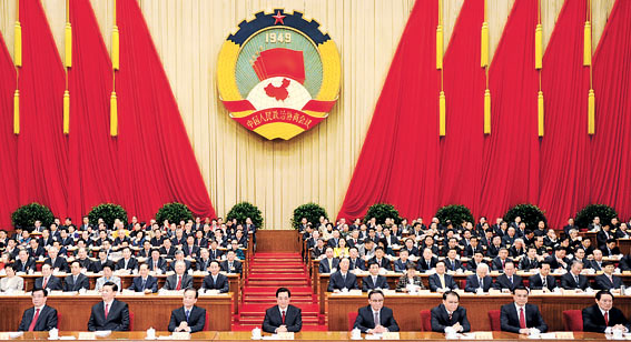 3月3日下午,中国人民政治协商会议第十一届全国委员会第四次会议在北京人民大会堂开幕。党和国家领导人胡锦涛、吴邦国、温家宝、李长春、习近平、李克强、贺国强、周永康等在主席台就座,祝贺大会召开。新华社记者 李学仁/摄
