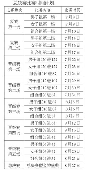 3)总复赛角逐出全国50强选手;(含20男,20女,10组合);