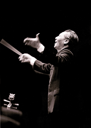 但是,彭先生在排练时并不主张单独抽查,在他貌似严厉的态度下着实有着对乐队队员们相当的尊敬,一般他都会给队员们留下一些空间和余地。在彭先生所营造的气氛之中队员们也会非常自觉地、投入地去配合他的指挥。