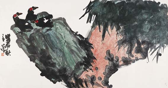 崔老的艺术创造首先是来源于生活。他一直关注现实生活,注重从生活中汲取新鲜的感受和营养,特别是他自己独特而丰富的生活和工作经历,以及所经历的种种磨练,使他对于生活有了更多的不同于常人的深刻理解和独特的感受,反映在艺术上,就形成了他独特的对艺术的观察和表现的方法。崔老有一颗童心。童心就是纯洁、善良与爱人之心。崔老在北京画院工作时,给人的印象就是人好,以至文革给他的批判只有一条:政治右倾。由此,崔老一直追求返璞归真的感情,他的画让人感受到的是可爱烂漫的稚趣,纯然自成的天趣,让人的情感真正得到放松、愉悦与陶冶。然而,崔老在画中的表现却是大胆的,具有无比的勇气和胆识。在前人的一座座艺术高峰前,他没有退缩,没有拜倒其下而止步不前,没有感到不可逾越的思想障碍。他是走进艺术高峰,尽览其成就与经验,吸取有益的营养之后,坚持寻找自己的艺术道路。他大胆突破前人用笔用墨的优秀传统和审美经验,而改以自己的独特方式,高度概括,不拘小节,粗笔破墨,大起大落,在看似随心不经意间,完成了有如自然天成的强烈风格创造。他的用色更是大胆,常以大红大绿的色彩构成打破前人的视觉经验,令人震惊。在晚年,他的用色愈加的凝重和艳丽,让人充分感受到了他的用色效果的独特魅力和审美内涵。很显然,他的画完全打破了传统文人画的审美理想,并大大地与其拉开了距离,在大俗大雅与雅俗共赏中,更加倾向于普通大众的审美情趣,为他们所喜爱。