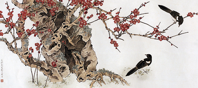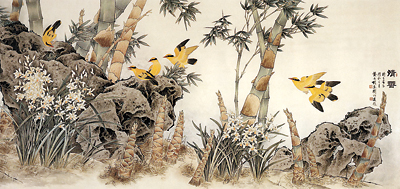 工笔重彩花鸟画历史悠久,早在唐代以前花鸟已经成为画题,这是由于中国人在宇宙自然“天人合一”、“万物和合”的观念影响下,大至山川小至草木,都最早地进入画家的视野之故。唐宋之际,工笔花鸟画大盛,留下许多经典作品,成为后人发掘、学习和继承的范本。20世纪30年代,于非闇由写意转入工笔,开发宋人诸多密钥,使工笔花鸟画开始进入柳暗花明时期,新中国成立后又经两代人的努力,如今已是队伍庞大、风格各异、百花灿烂的辉煌局面。龚文桢的花鸟艺术,既绍述于非闇、余致贞、田世光一脉,又能紧随时代,有所用心、有所创造、有所发展。大江以北,工笔花鸟画实力派之首,非龚莫属。
