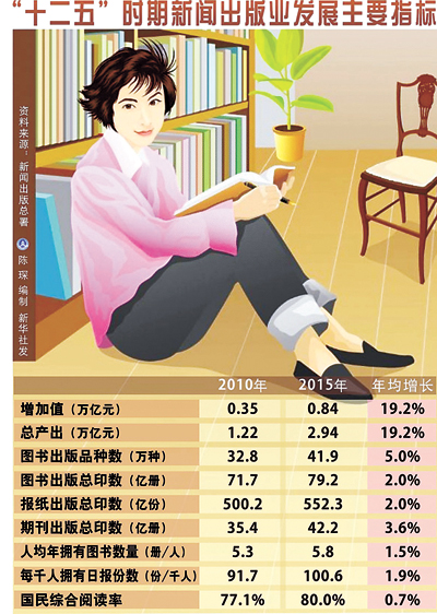 图表:“十二五”时期新闻出版业发展主要指标 新华社发
