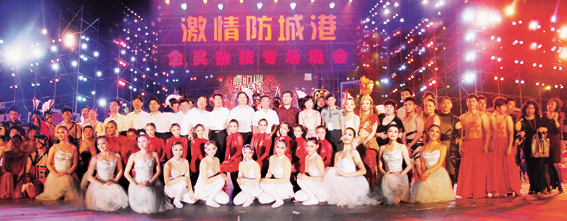随着五彩斑斓的烟花升腾四射,由广州军区战士杂技团团长李亚萍担任总导演,著名相声表演艺术家牛群、中央电视台著名主持人鞠萍担任主持的“激情防城港——金奖杂技专场晚会”开始上演。